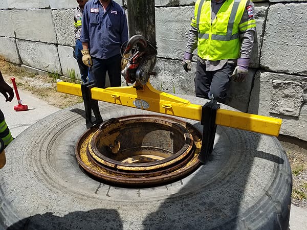 L’unité standard s’adapte aux roues multipièces de 25″ à 51″. Se fixe à la grue du camion de service. Les moulages de bras en acier sont plus performants que l’aluminium.