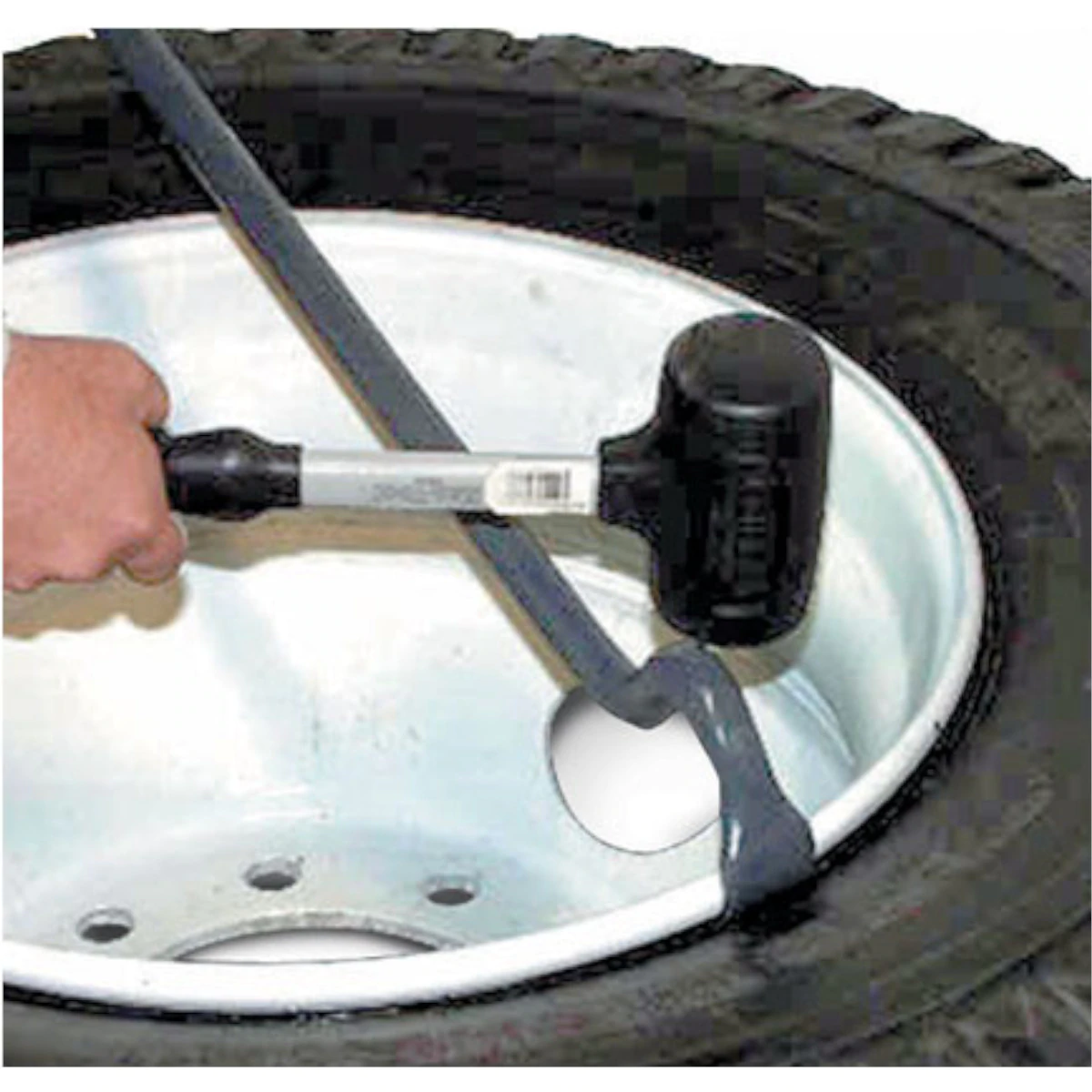 Cet outil léger et portable est une excellente alternative aux bar de détalonnage ou aux détalonneurs hydrauliques. Une extrémité est utilisée pour enlever les talons gelées ou rouillées de tous les types de jantes