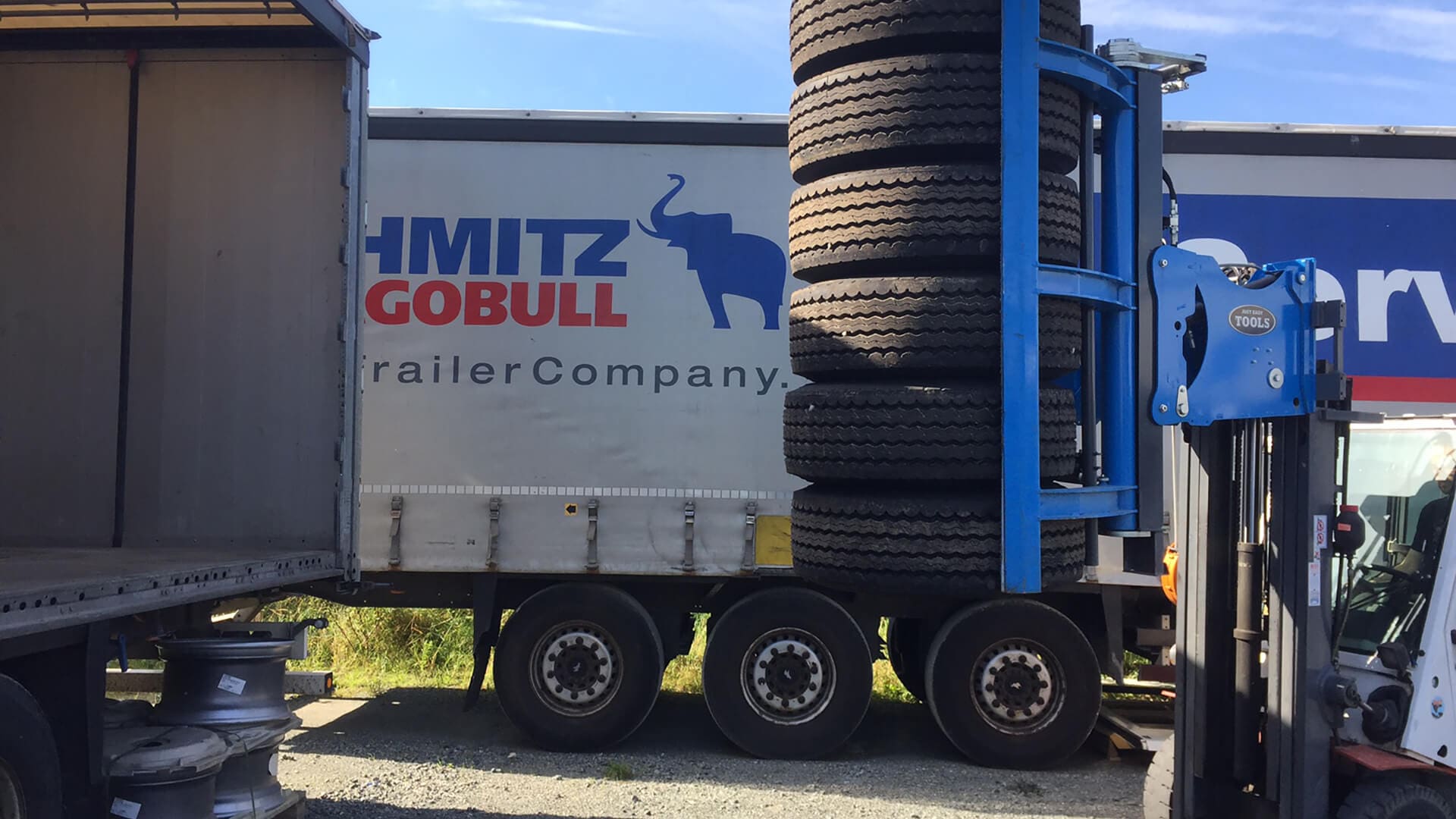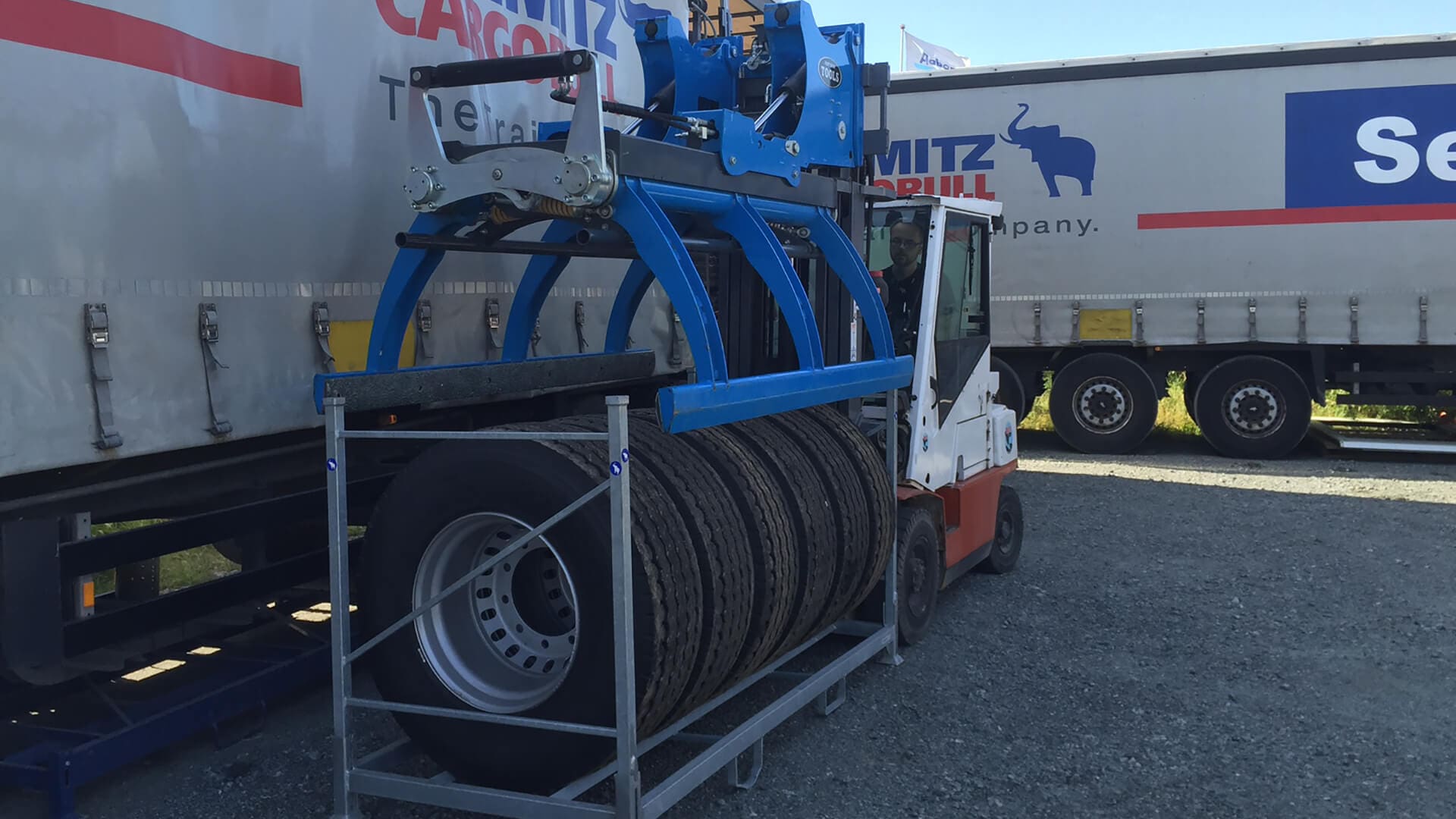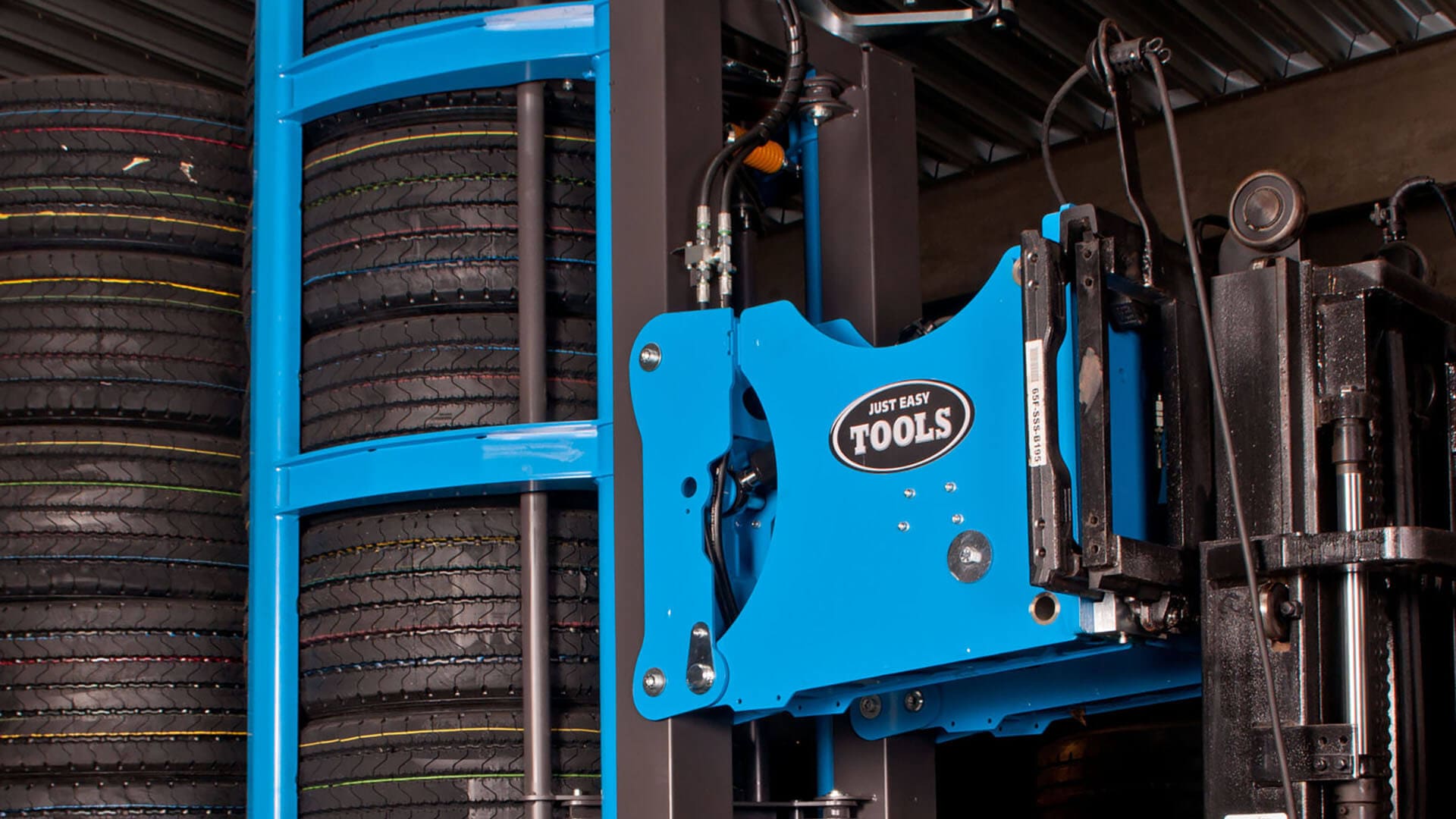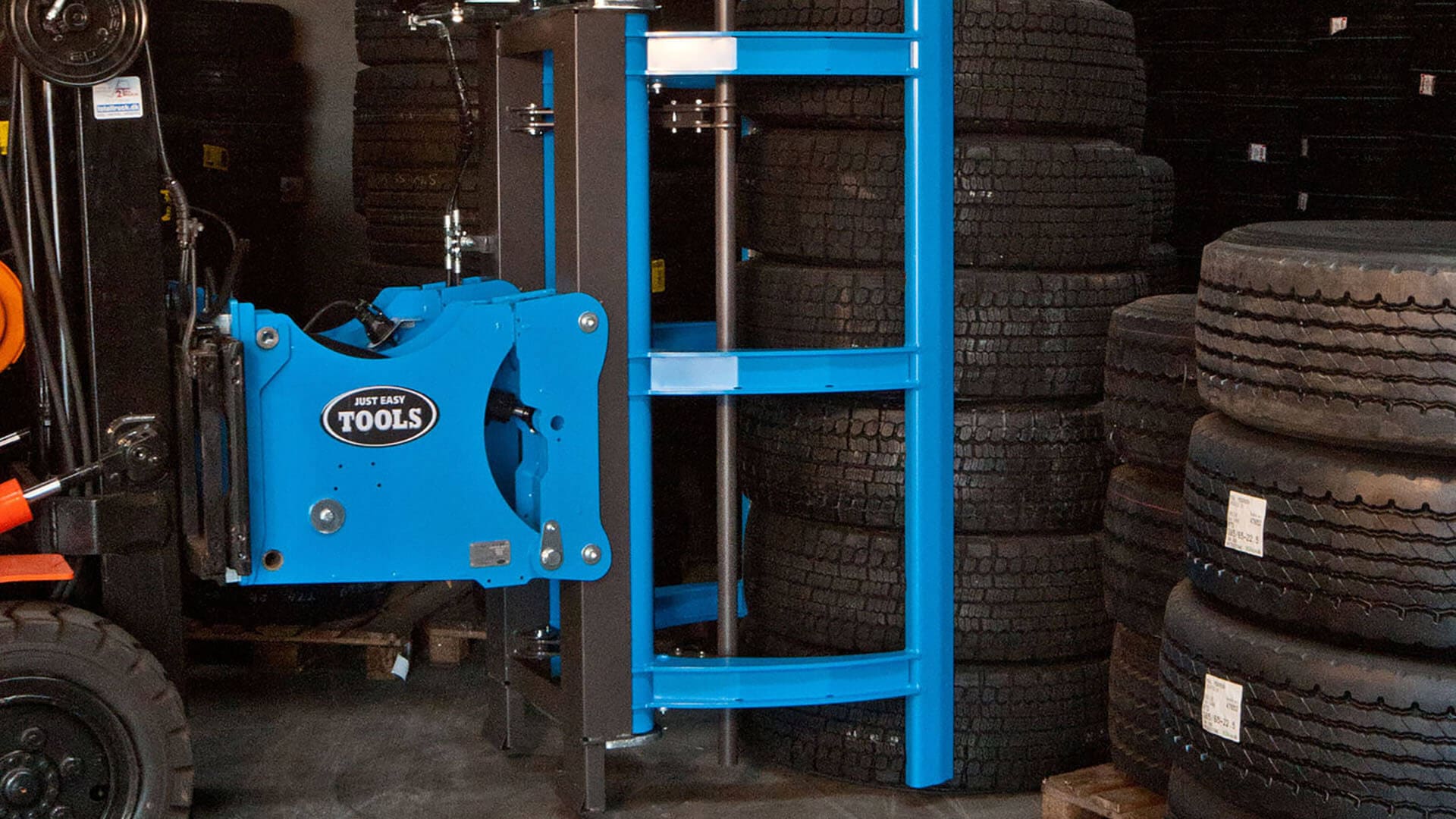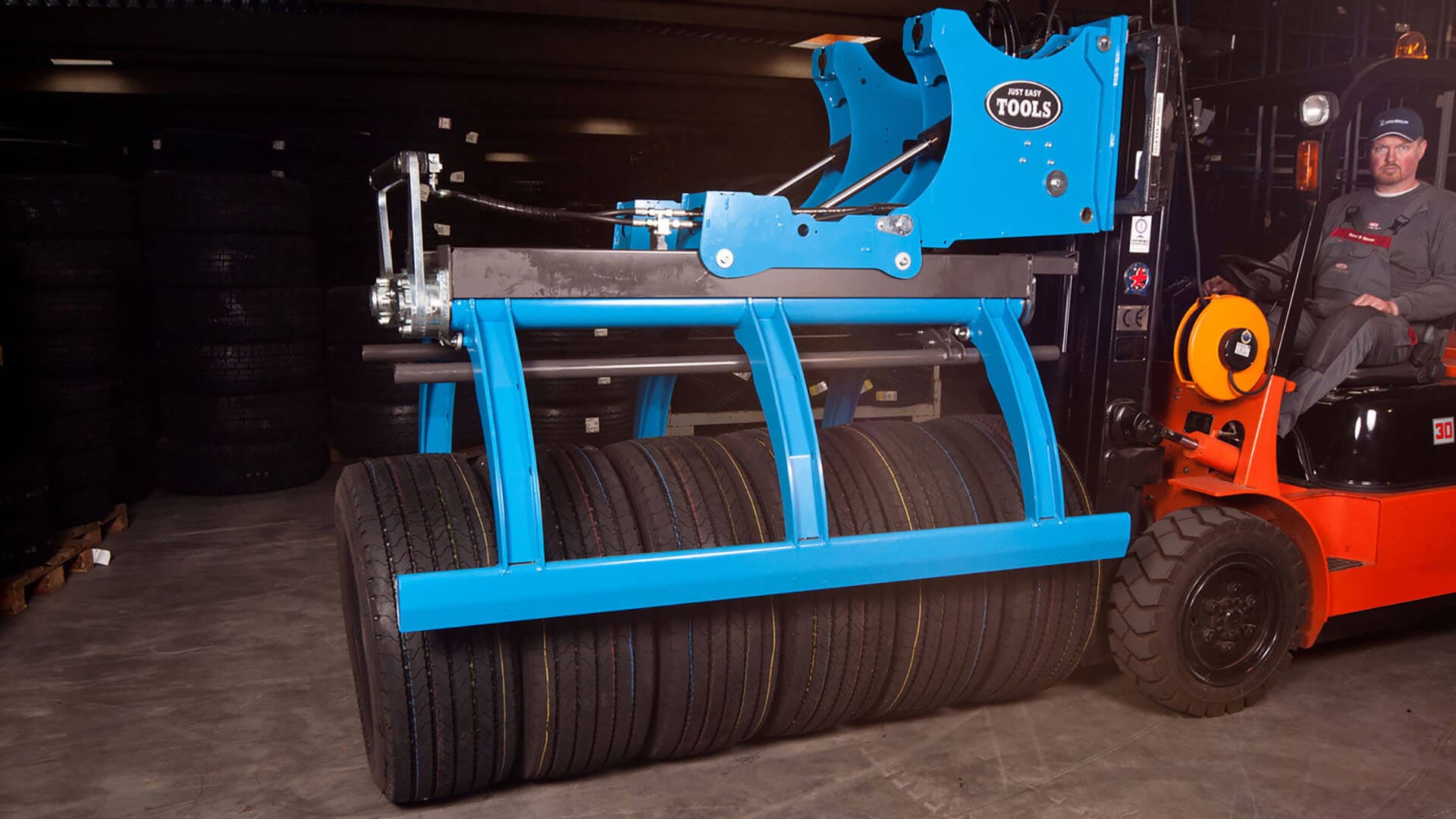 The Easy Stacker 1200 is designed to stack and handle stacks of truck tyres with a firm grip and with movements optimized to operate in tight space in warehouses, production areas, trucks and containers.