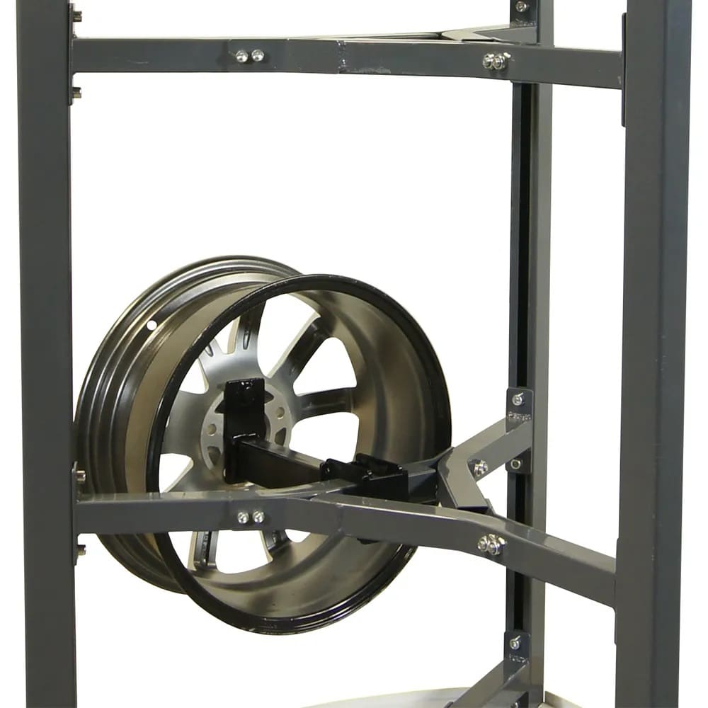 Transformez facilement votre Présentoir pour pneus et jantes tourisme (MTWD-PCR) en un présentoir de jantes de 360° grâce à l’ensemble de Supports de jantes tourisme. Une solution rapide et facile : fixez simplement le support sur les étagères du présentoir et boulonnez votre jante sur le support.